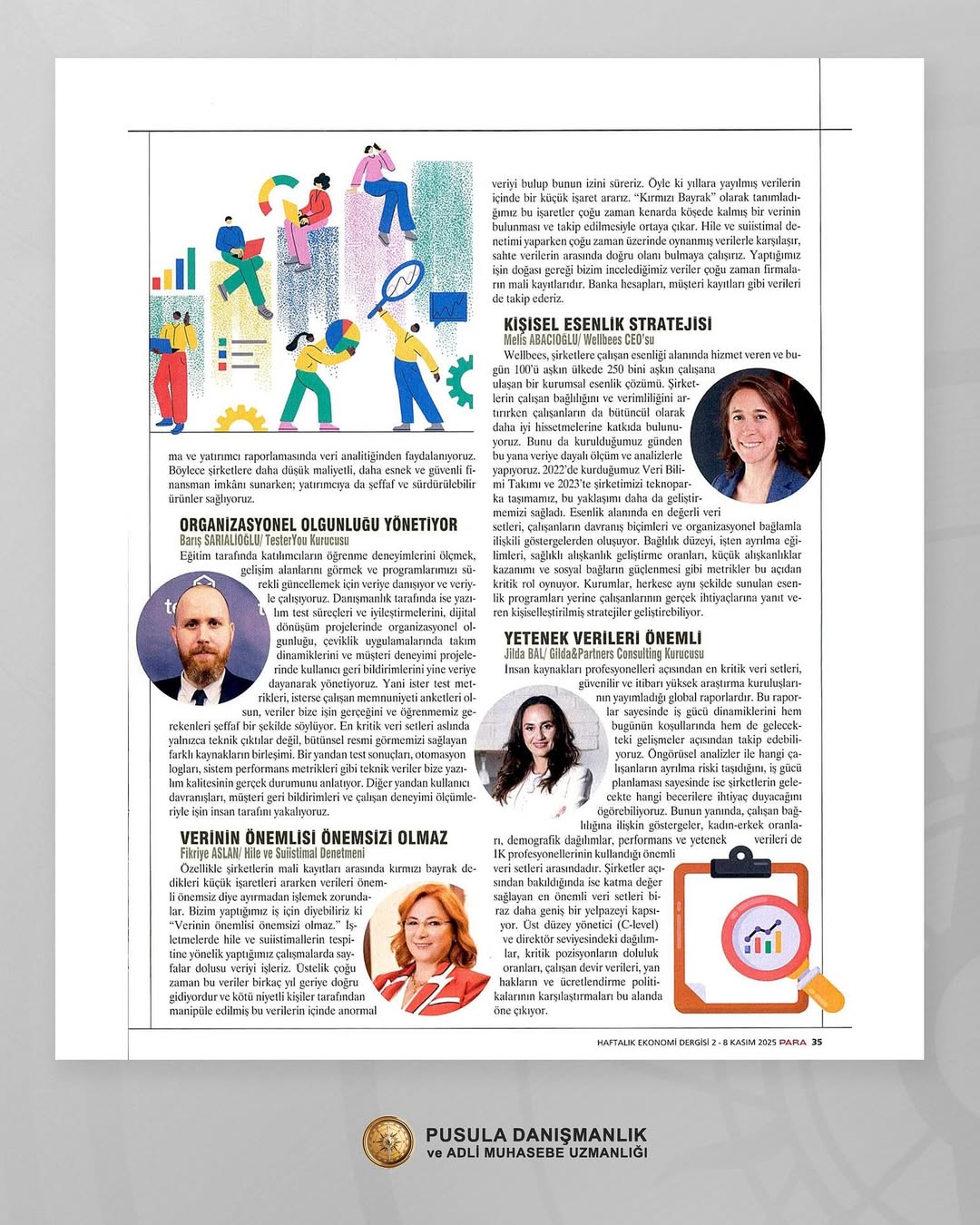 Mali Müşavir l Hile Denetimi Uzmanı Fikriye Aslan, verinin doğru ve etkin kullanımının önemine ilişkin Para Dergisine değerlendirmelerde bulundu. Aslan, hile denetiminde “kırmızı bayrak” verilerin kritik olduğunu belirterek, verinin izini doğru sürmenin en önemli unsur olduğunu vurguladı. Detaylar için tıklayınız.